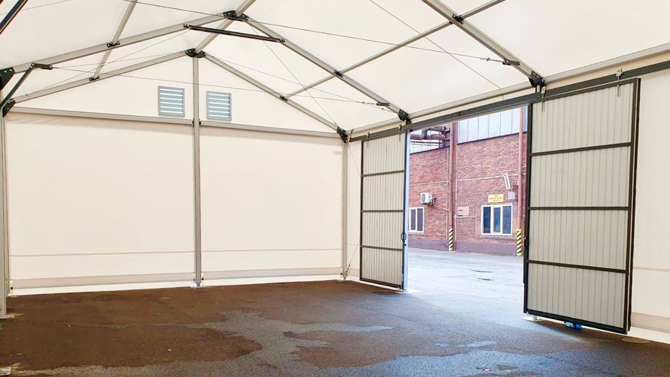 Lightweight tent halls used as a storage facility.