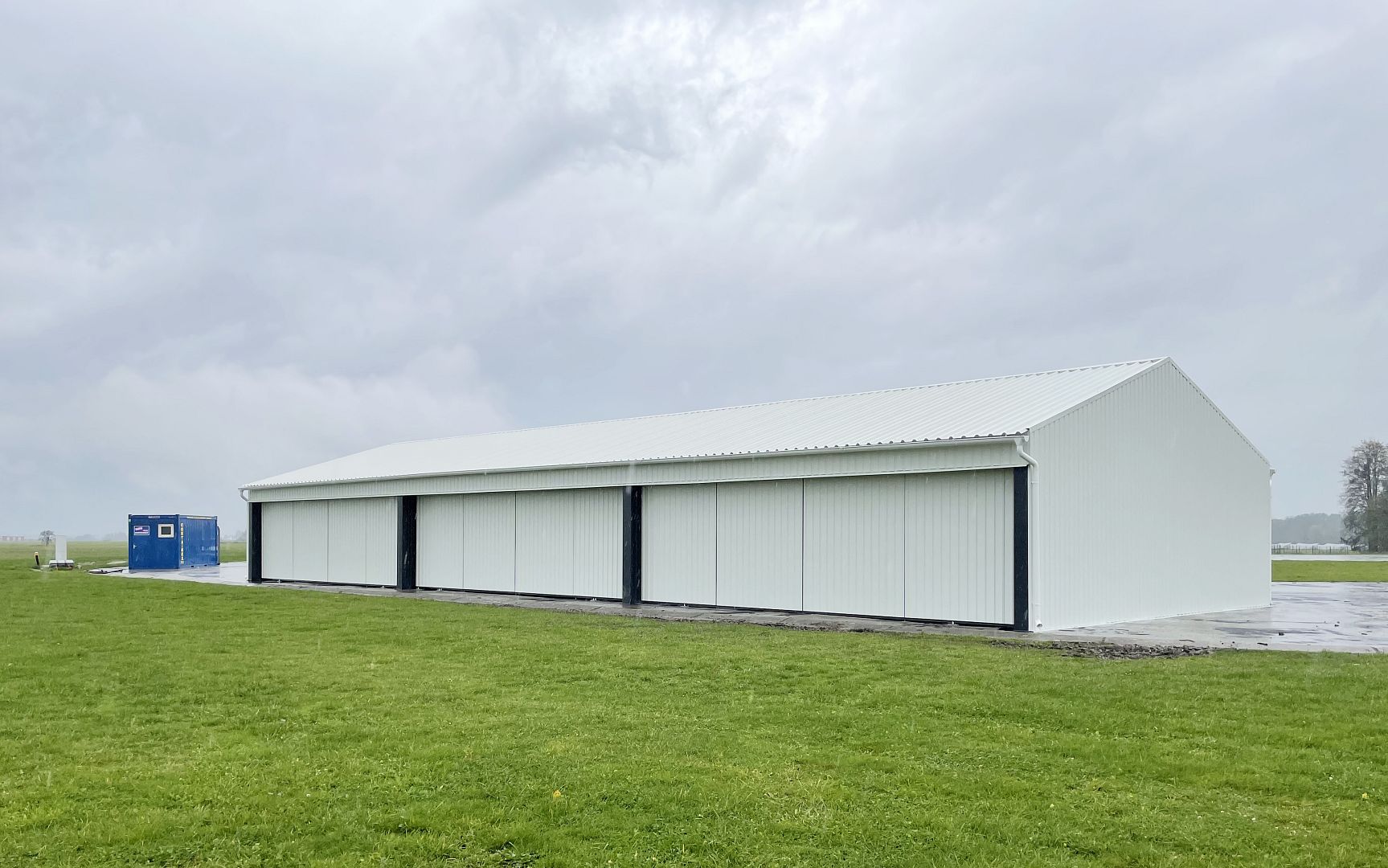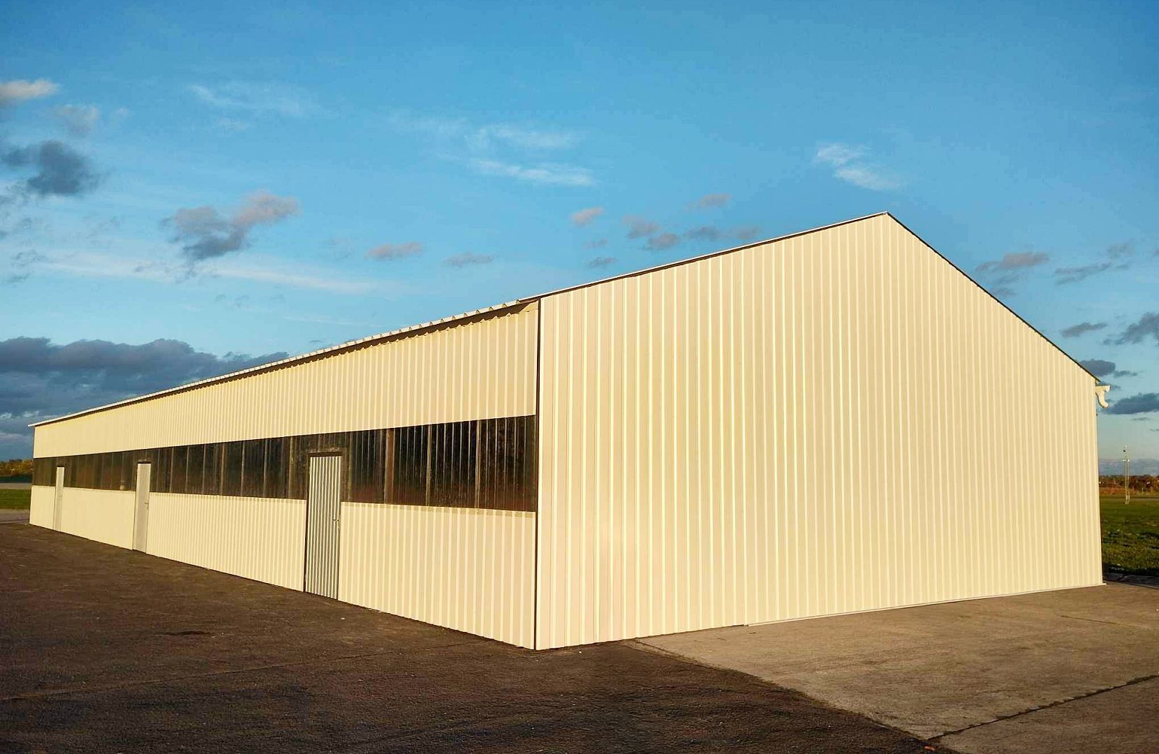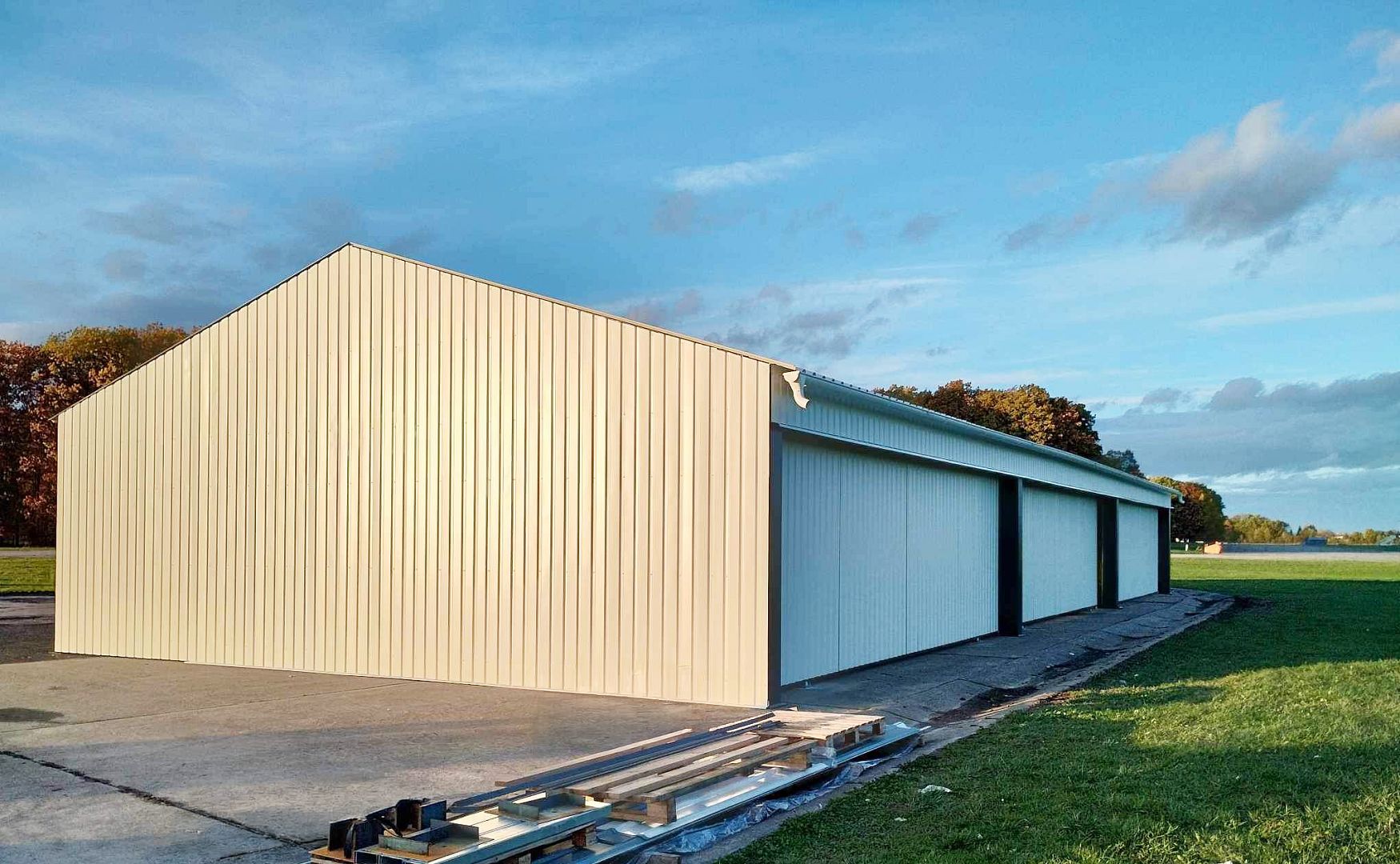 Prefabricated TR-type hangar with a lightweight steel structure.