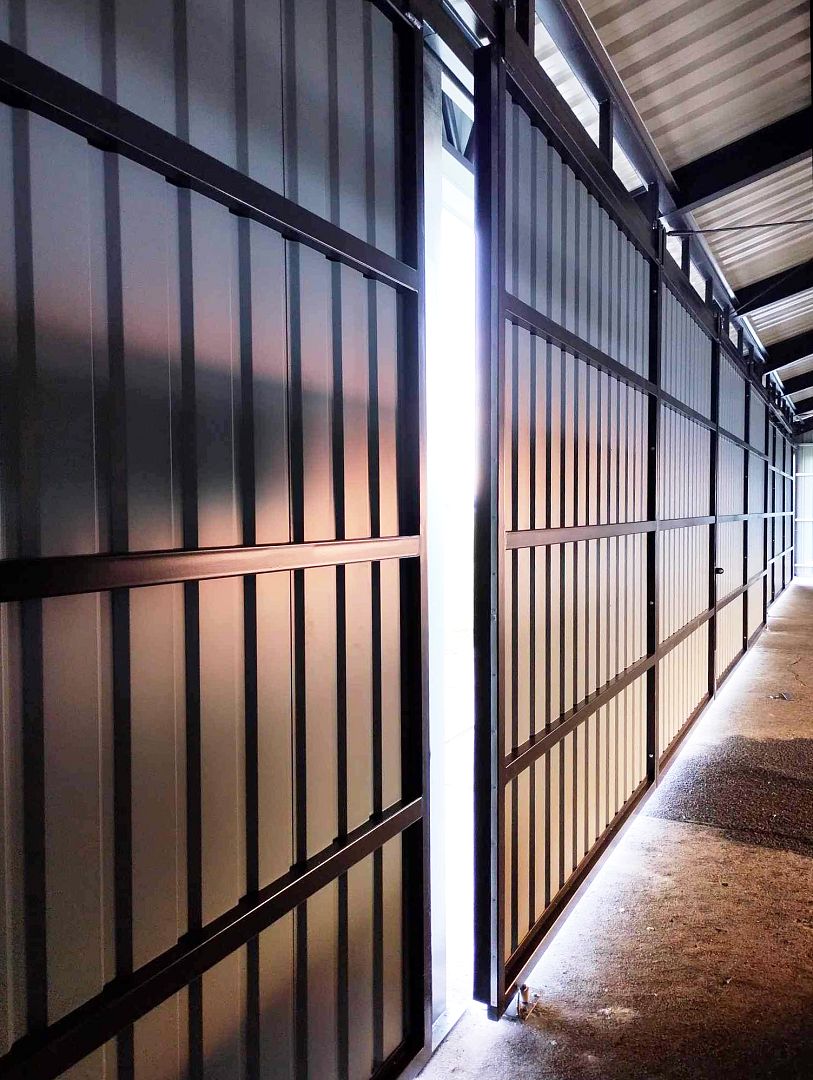 3× hinged doors, W 1,100 mm × H 2,000 mm, with galvanized steel sheet infill