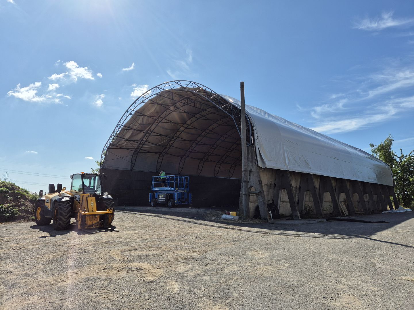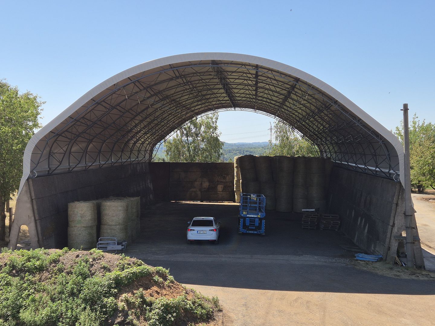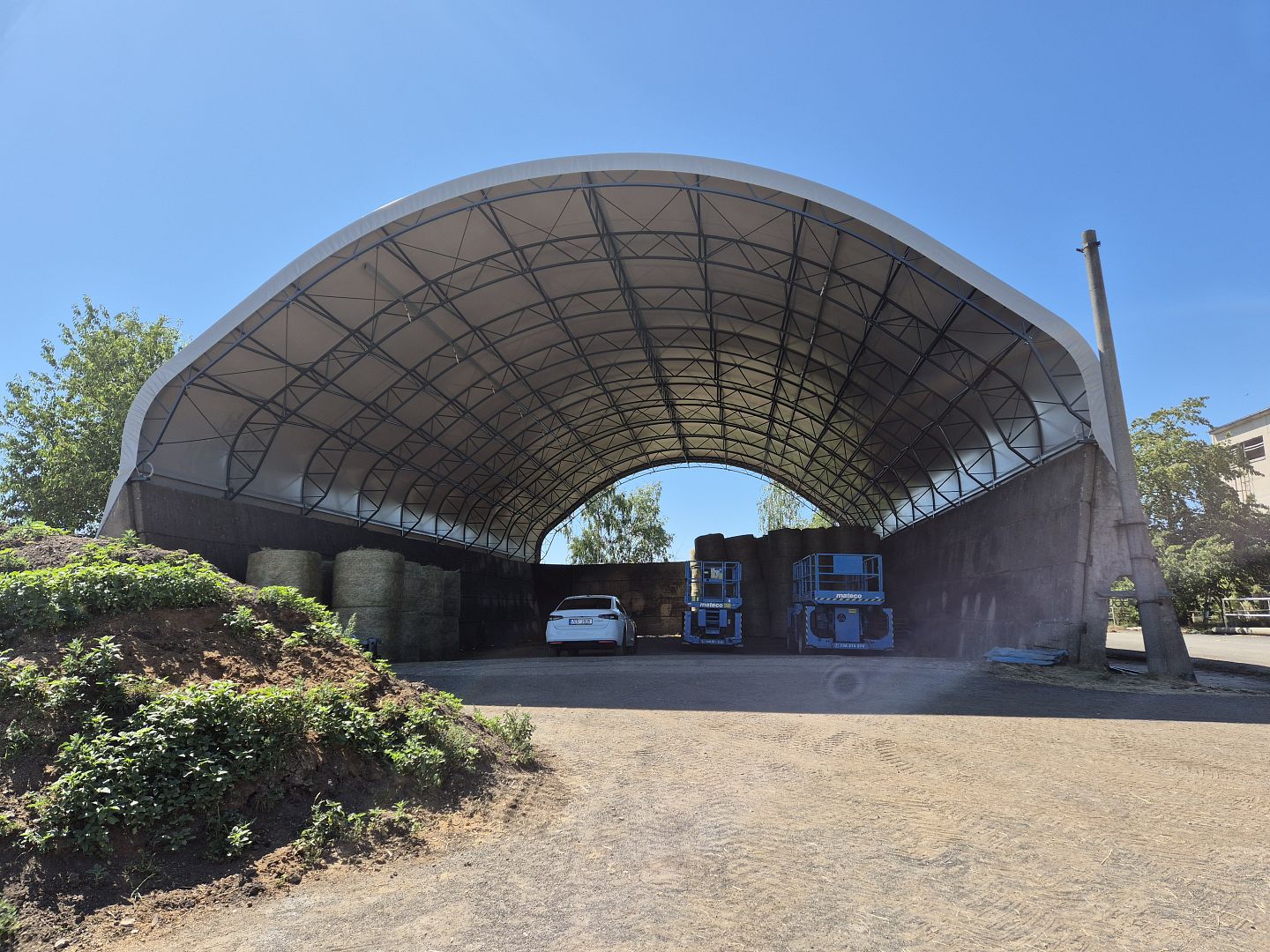 Roofing of a silage trench using a UT-type lightweight steel structure, located in Bojanovice on the agricultural premises of Stáj URBAN spol. s r.o.